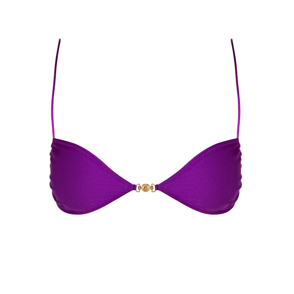 The Ella in Petunia by Sommer Swim is a bralette bikini top with visible tie features, delicate gold hardware, adjustability for coverage with an embossed gold clip closure.
