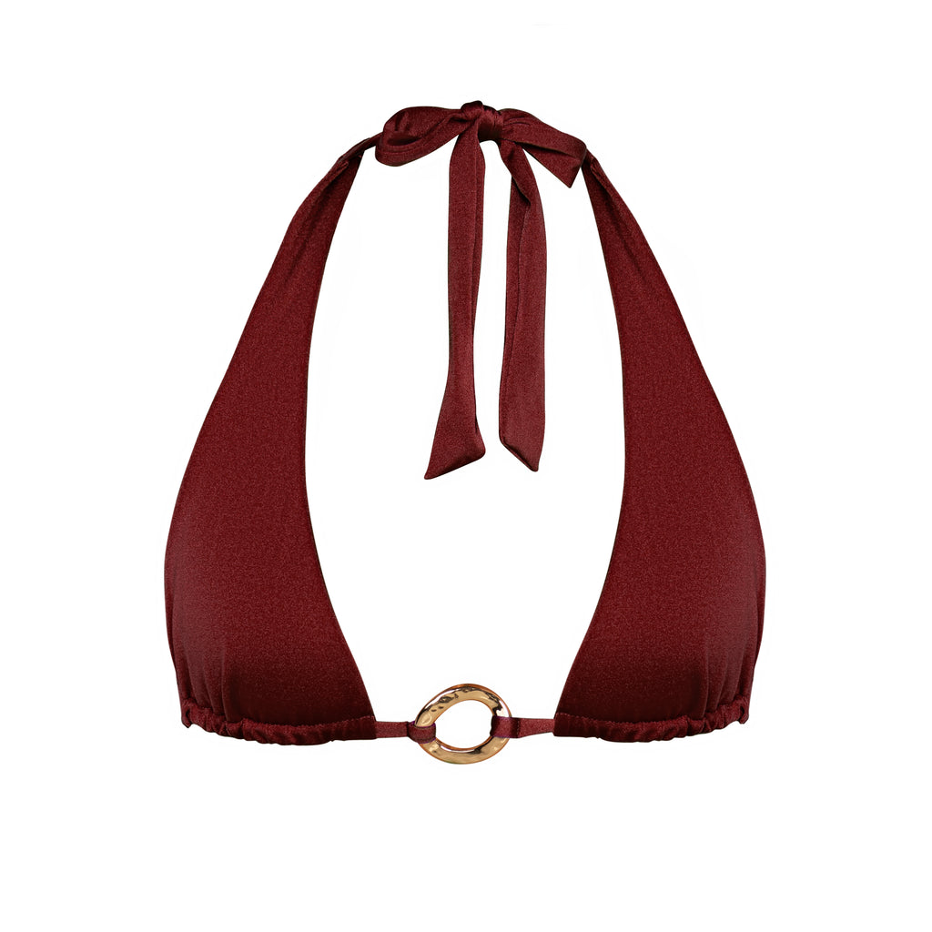 The Ryan in Ribera by Sommer Swim is a halter style bikini top with a gold front ring feature, thicker band for extra support and adjustability around the neck